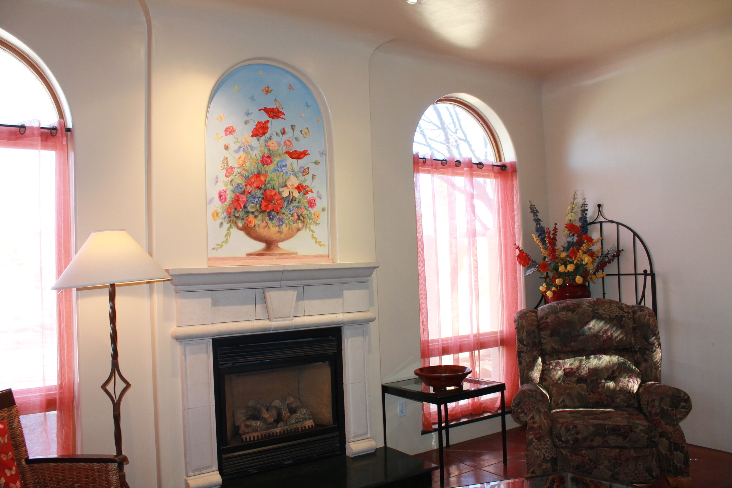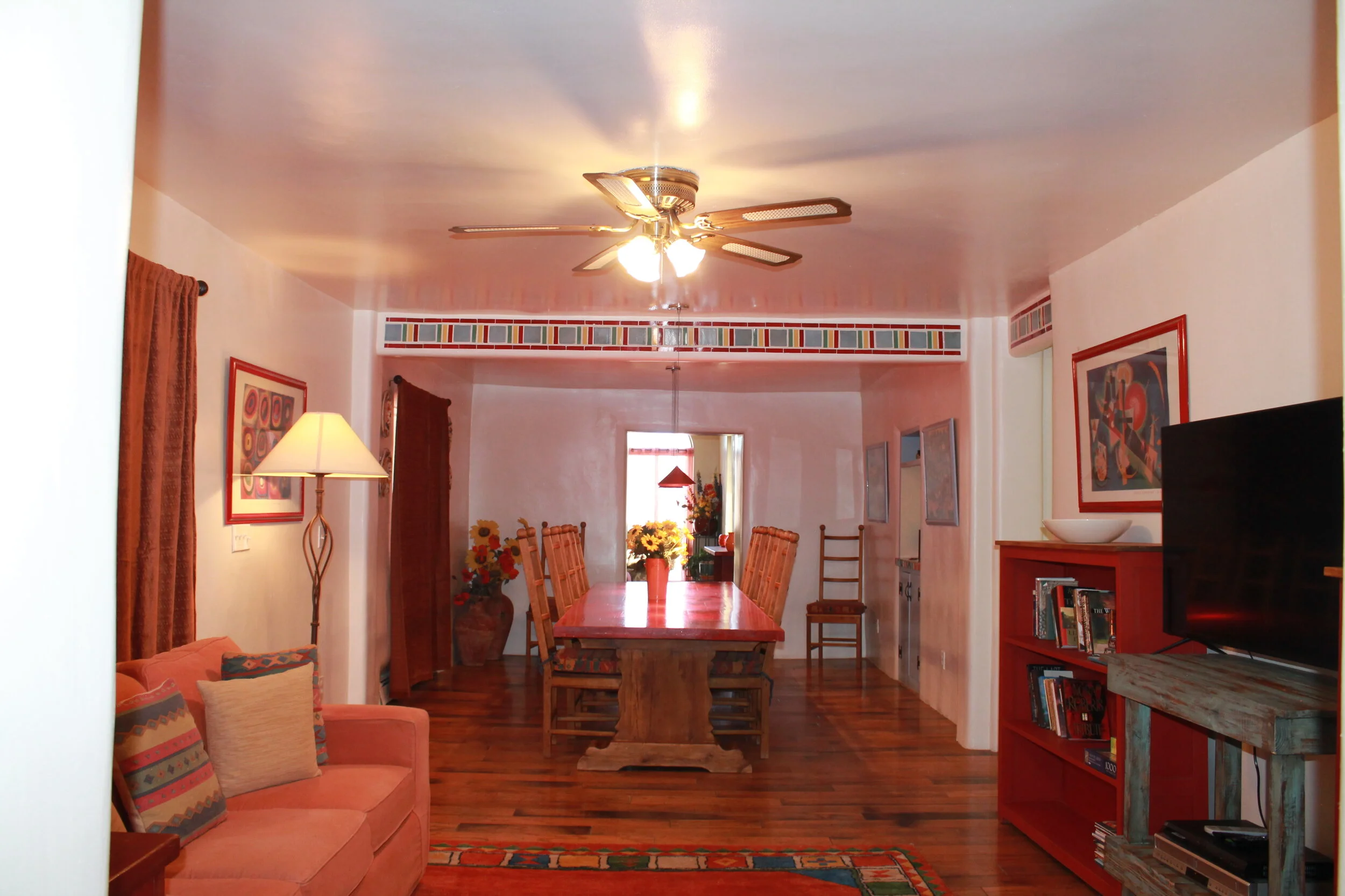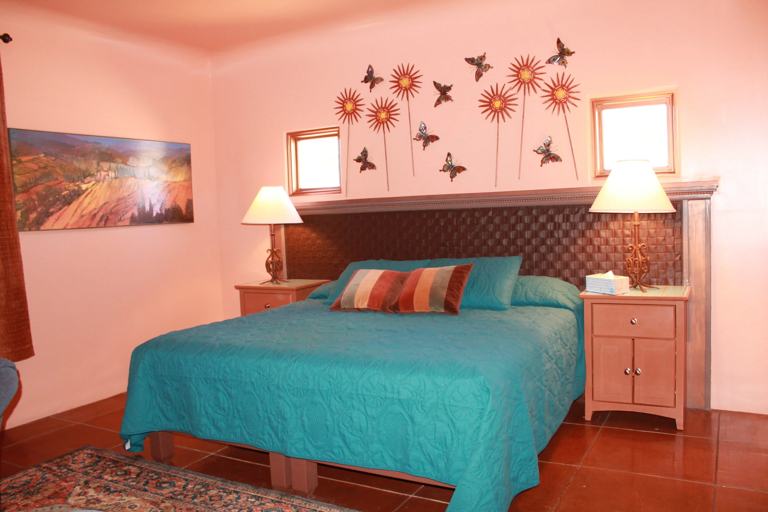 Butterfly House is Rancho Jacona’s largest house. It began as a small four-room adobe in the 1930s. It was added to in the 1950s, or thereabout, and again in 2000. It came up for sale in 2000, and being adjacent to the Rancho Jacona property, it was purchased to accommodate our biggest families/groups. In response to frequent requests for more space, an annex with two bedrooms and two baths was added and the interior rooms were opened up to make them larger.