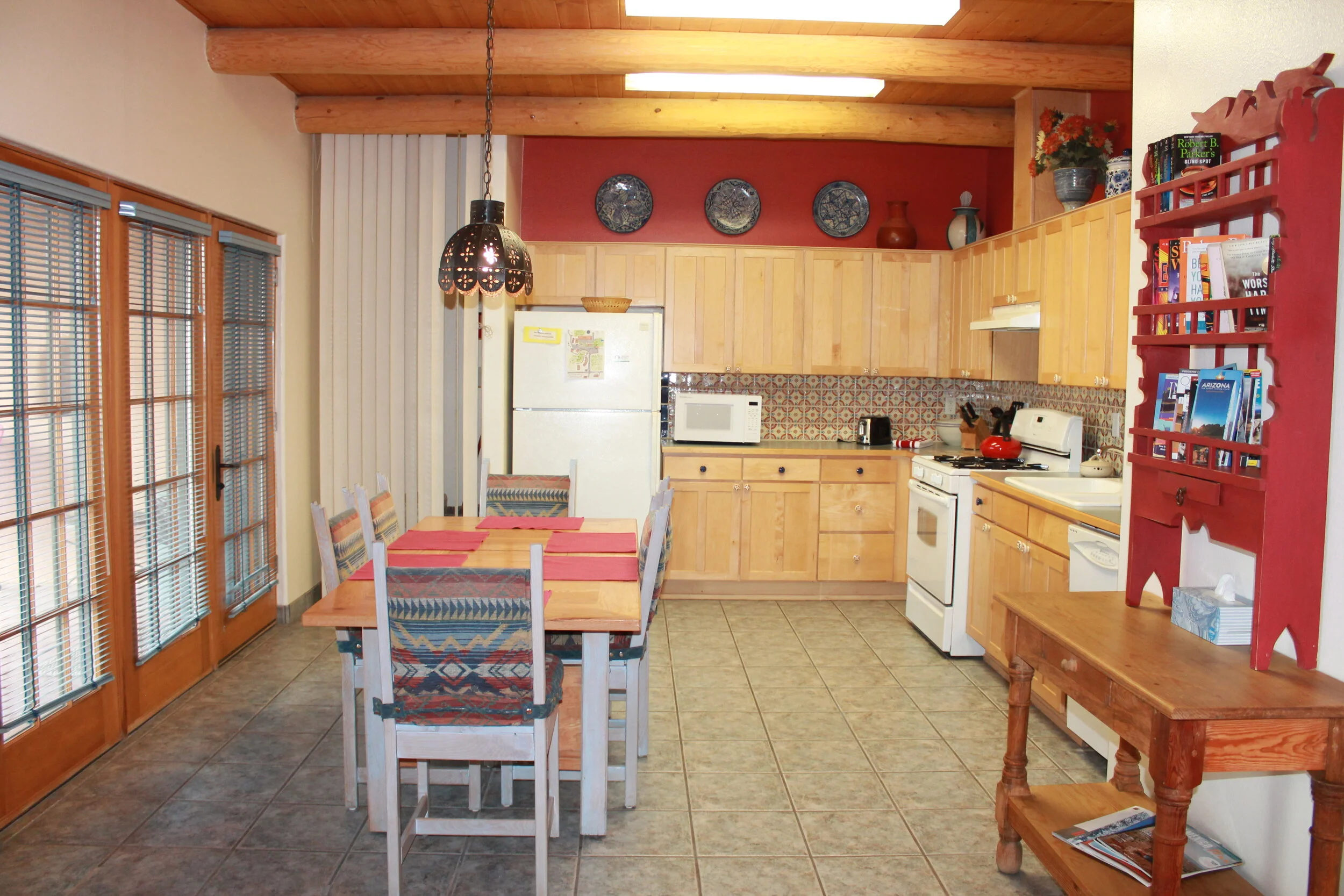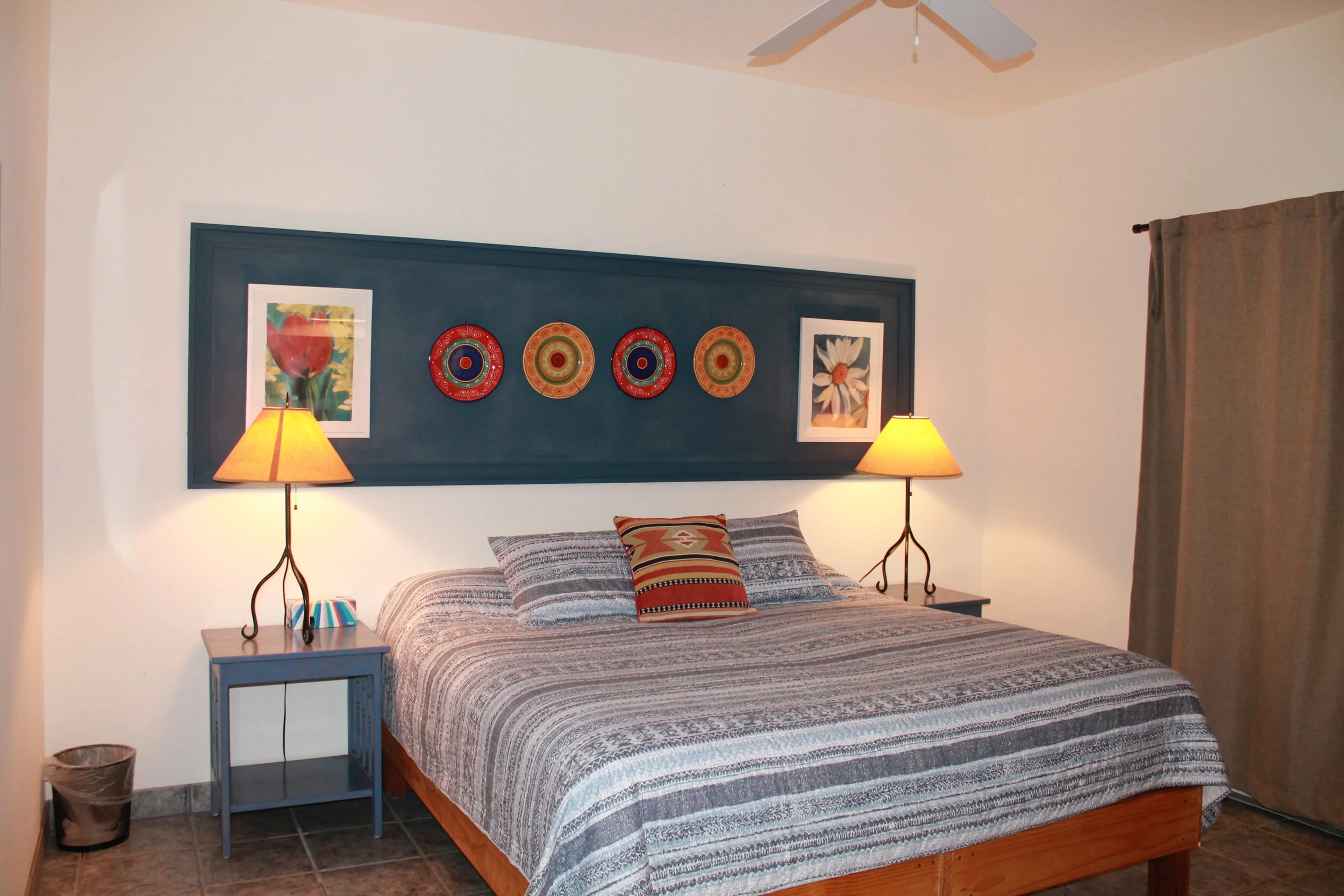 There is a covered portal with grill and a view of the Jemez Mountains to the west across the neighboring pasture. The house has an evaporative cooler for summer and a baseboard radiation system for winter. Lizard has a wood-burning fireplace. Lizard sleeps 2-5.